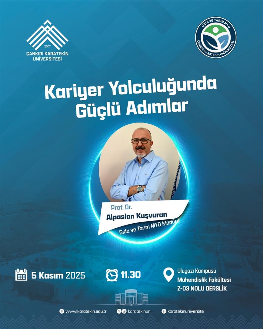 Müdürümüz Prof. Dr. Alpaslan Kuşvuran, kariyer planlaması, sektör beklentileri ve profesyonel gelişim başlıklarında bilgi ve deneyimlerini siz öğrencilerimiz ile paylaşacaktır. Tarla Bitkileri Programı öğrencilerimiz davetlidir.