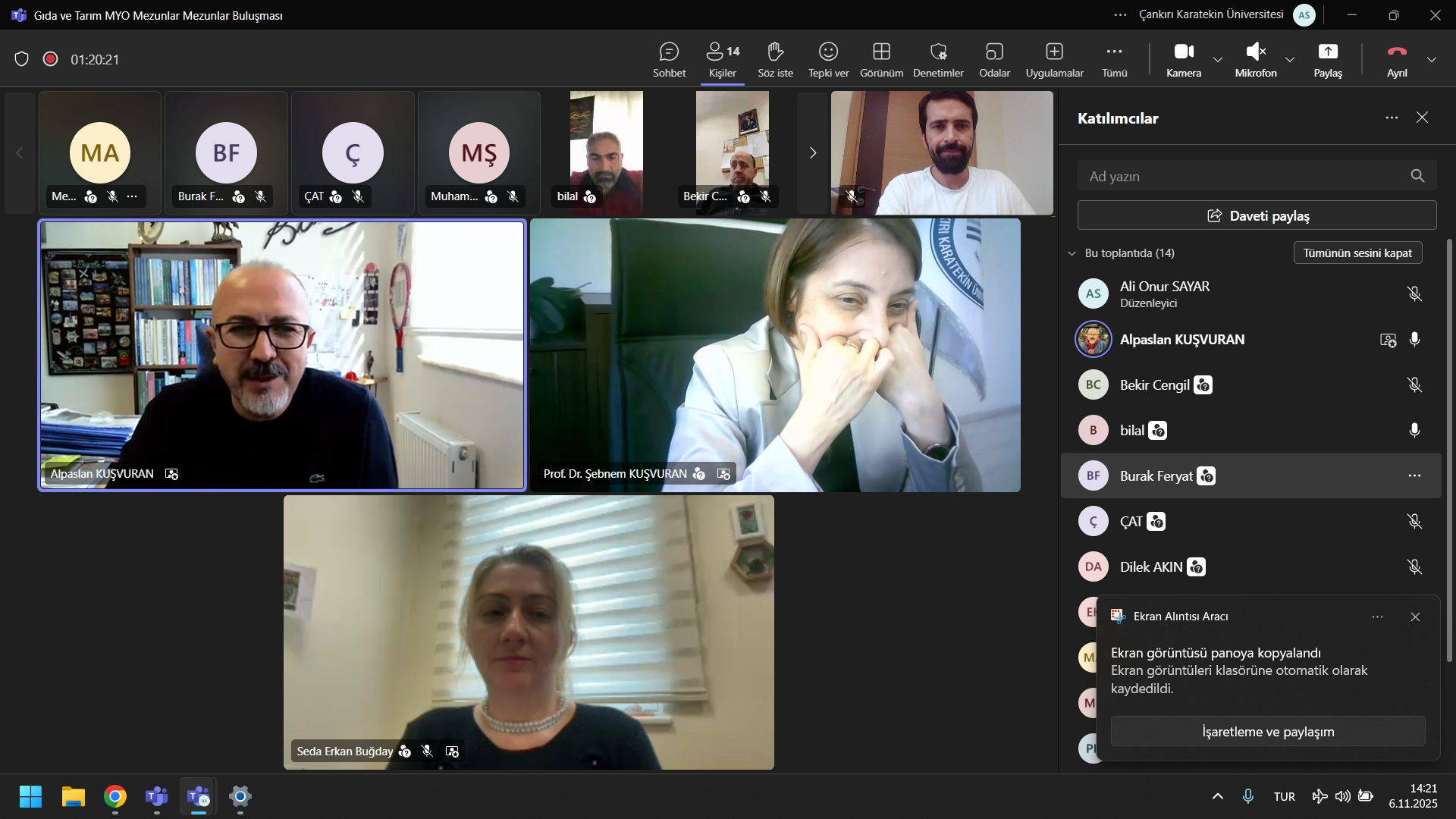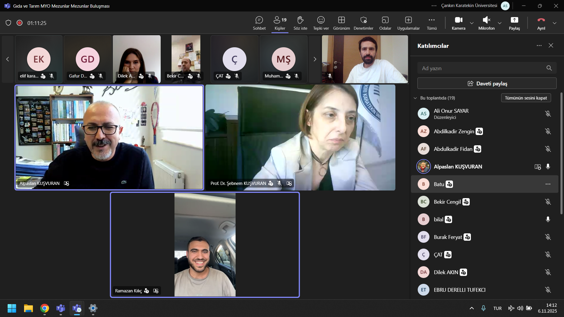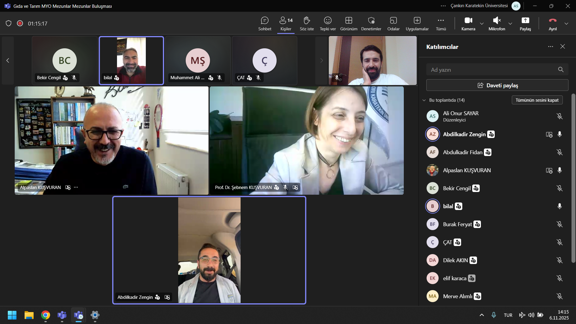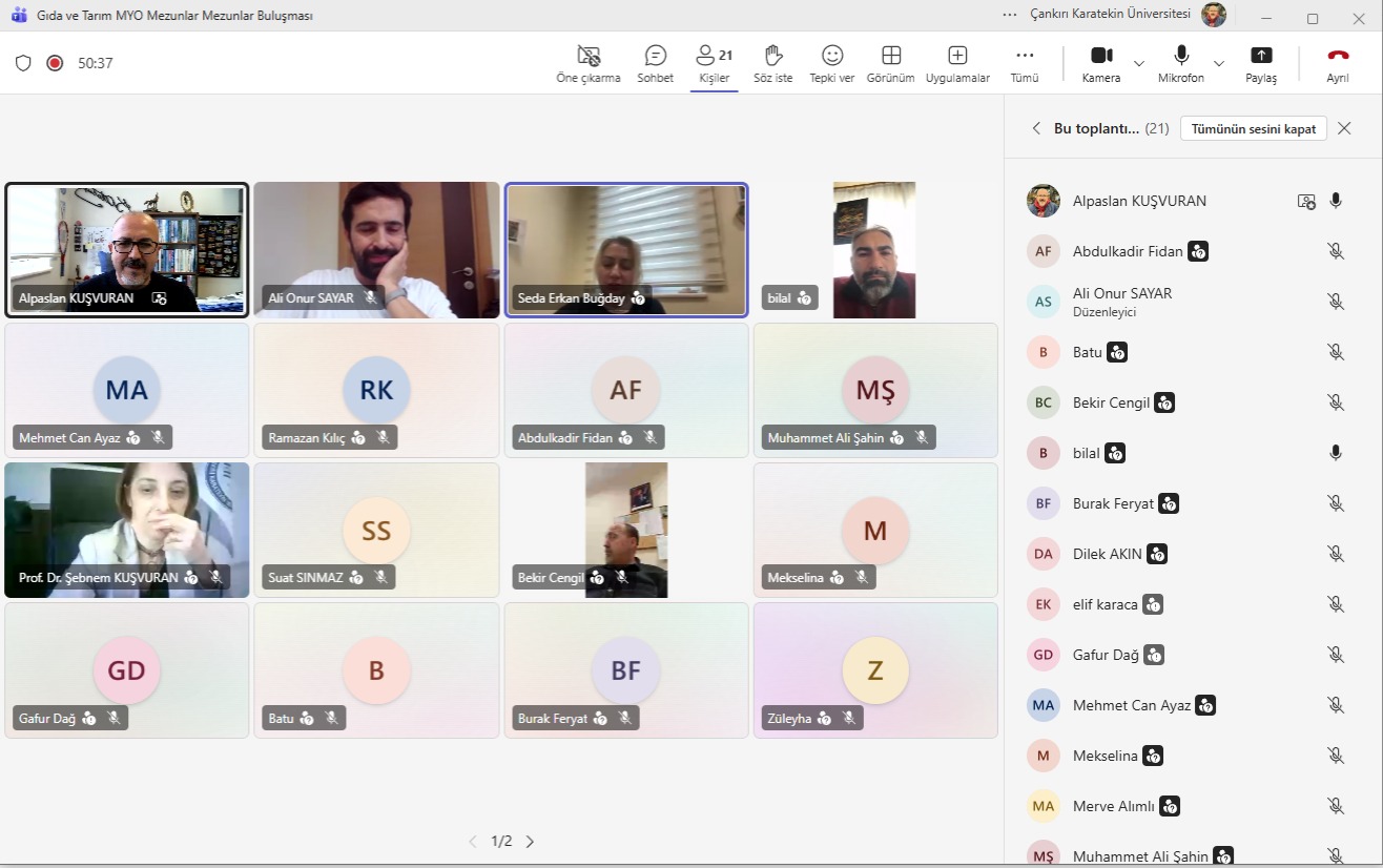 Çankırı Karatekin Üniversitesi Gıda ve Tarım Meslek Yüksekokulu’nun düzenlediği “Mezunlar Buluşması” başarıyla tamamlandı. Etkinlik, Yüksekokul Müdürü ve bölüm başkanlarının moderatörlüğünde yürütüldü.