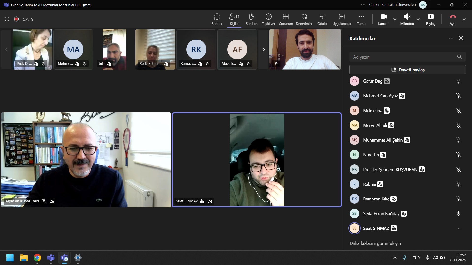 Buluşmada mezunlarımız, mezuniyet sonrası deneyimlerini birbirleriyle paylaşarak farklı kariyer yollarına ilişkin iyi uygulamaları aktardı. Katılımcılar; sektör dinamikleri, istihdam olanakları ve profesyonel gelişim konularında karşılıklı bilgi alışverişinde bulundu.